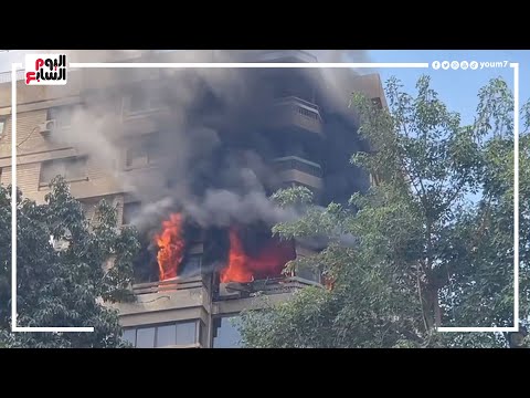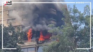 فيديو حريق هائل يلتهم محتويات شقة سكنية في العمارة التي تسكنها الفنانة ميرفت أمين المدار